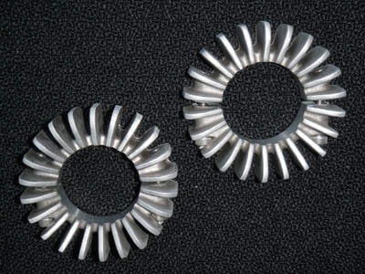 How can you live without them? Radial finned exhaust clamps. 52 SQUARE INCHES OF COOLING SURFACE PER FINNED CLAMP. That's 334.5 square cm of cooling surface for the rest of the world. Wow! all those squared things dissipating heat keeping your engine, oil and you cool also preventing pipes blueing. That's a lot of surface packed in a compact little ring loaded with 22 fins. Too late for my pipes (as shown in pics), they had already blued long ago before fitting. Unlike others available, Maund clamp rings make full compression contact with header pipe to dissipate heat. They are not bling, attached with set screws to stop them blowing off in the wind. Easy fit. Available for carbureted and EFI. Bonneville and Thruxton.